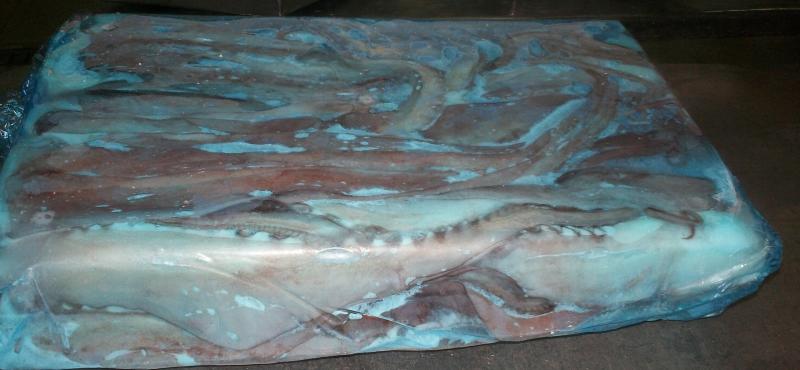 Tentáculos de pota congelado sin ojos ni pico, sin “uñas”, con o sin ventosas, enteros o seccionados, con diferentes cortes y tamaños (Bailarina), en block.