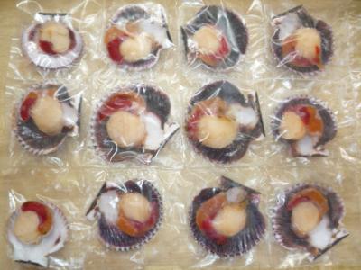 Media valva, tallo con coral de concha de abanico congelado, IQF